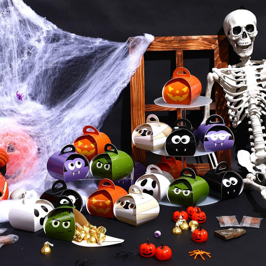 36 Pieces Halloween Boxes Halloween Goodie Boxes Candy Boxes with Handle Candy Container Horror Party Favor Box for Party Treat Favors Decoration, 6 Patterns