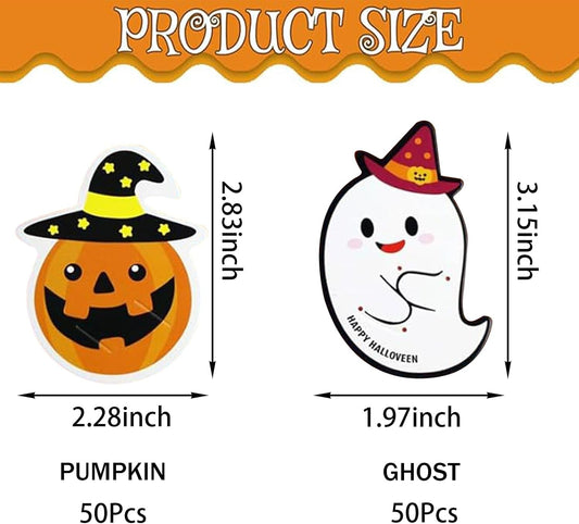 100 Pcs Halloween Lollipop Jam Chocolate Candy Holder Paper Cards Creative DIY Pumpkin Ghost Sugar Card Wrapping for Halloween Party Gift Accessories Decorations