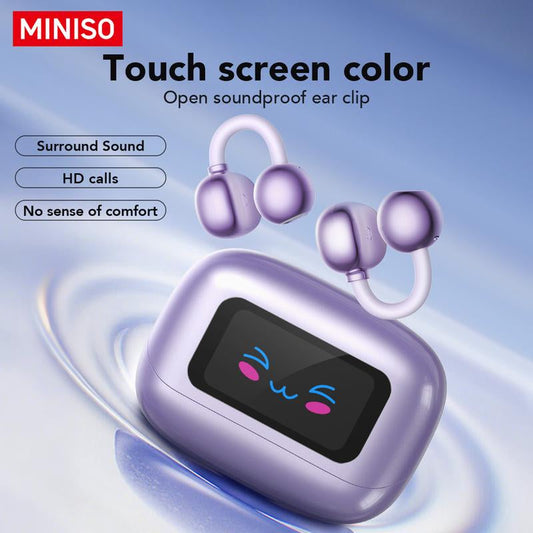 MINISO MS199 Clip-On Wireless Ear Headphones with Color Touch Screen, Built-In Mic, Waterproof & Sweatproof Sport Headset
