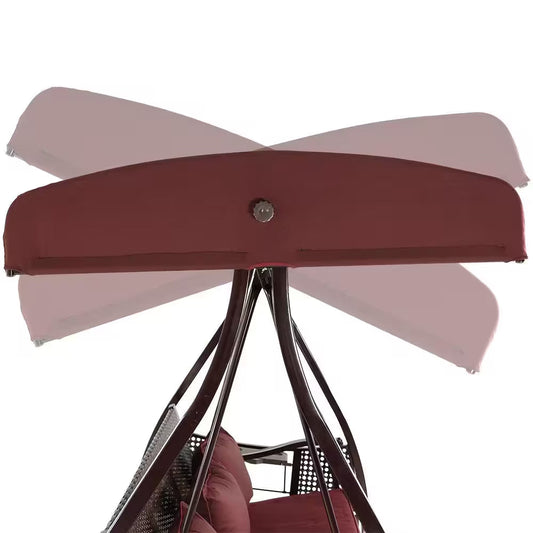 Deluxe Steel Frame Porch Swing with Maroon Cushion, Canopy and Side Tables