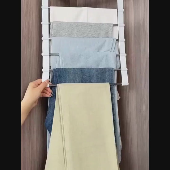 2-Pack Folding Multi-Layer Pants Hanger – Stainless Steel Wardrobe Organizer for Jeans, Leggings & Scarves