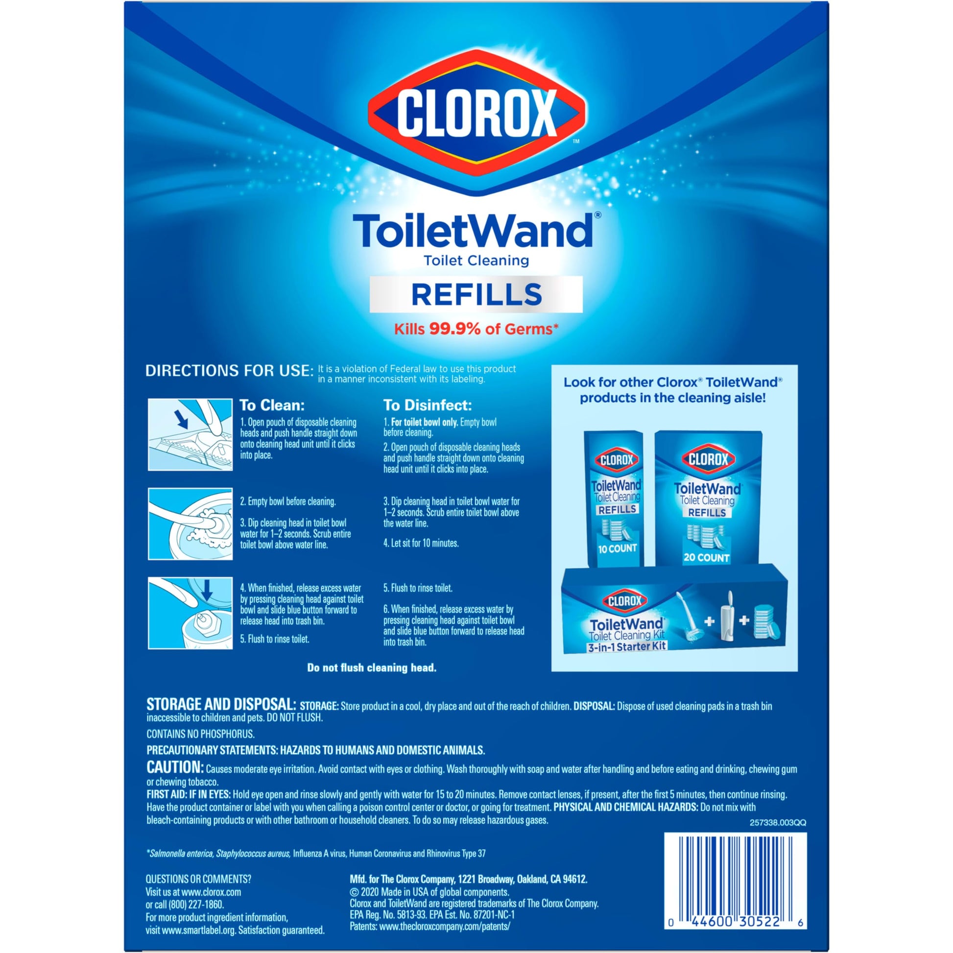 - TOILET BOWL CLEANER: Clean and disinfect with Clorox ToiletWand Toilet Cleaning Refills that kill 99.9% of germs while leaving your toilet sparkling clean; pack may vary