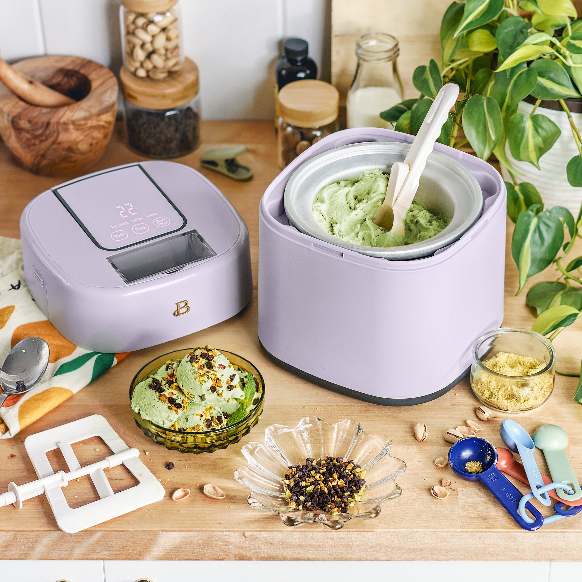 Homemade ice cream, sorbet, frozen yogurt and gelato any way you like it. With the Beautiful 1.5 qt Ice Cream Maker you can enjoy customized frozen treats in just 20 minutes. It's equipped with a touchscreen display, three preset functions, and a digital countdown timer to make the process a breeze. Created by Drew Barrymore, Beautiful Kitchenware® combines elegant design and contemporary colors for high-performance appliances that look beautiful on your kitchen counter. Color: Lavender.