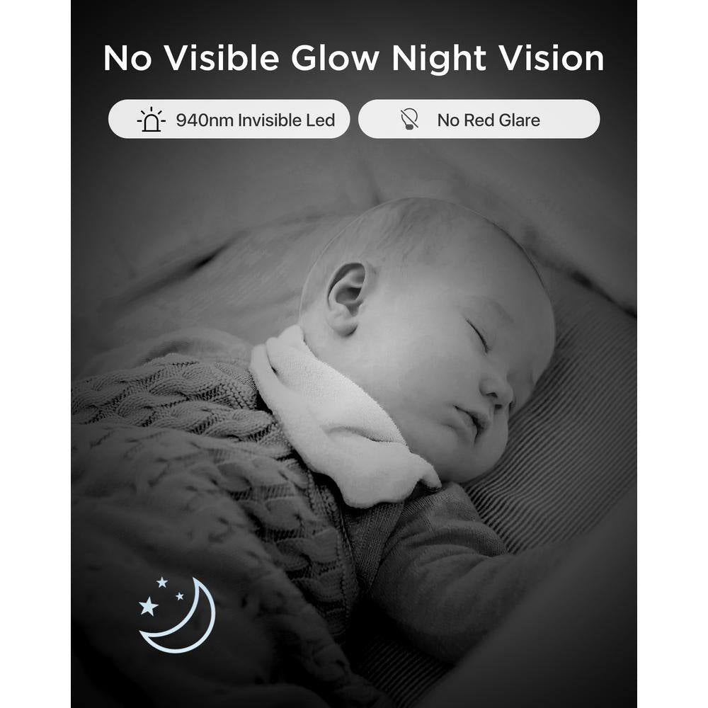 - 2.5K/4MP HD and 940nm Leds night vision with 2.5K/4MP high resolution, the baby camera monitor captures every detail of baby's playtime in stunning clarity, experience 940 nm clear infrared night vision without visible red light with the video baby monitor, ensuring that it won't disturb baby's sleep, real-time temperature and humidity monitoring makes sure you provide a cozy environment for your baby