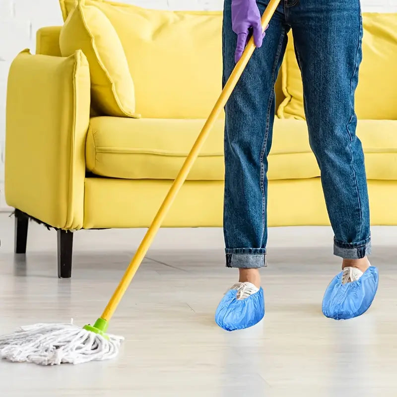 Keep floors clean with 100pcs Blue Disposable Shoe Covers. Made from durable non-woven fabric, these shoe protectors are reusable, lightweight, and easy to wear. Perfect for indoor use in homes, offices, medical spaces, and clean environments.
