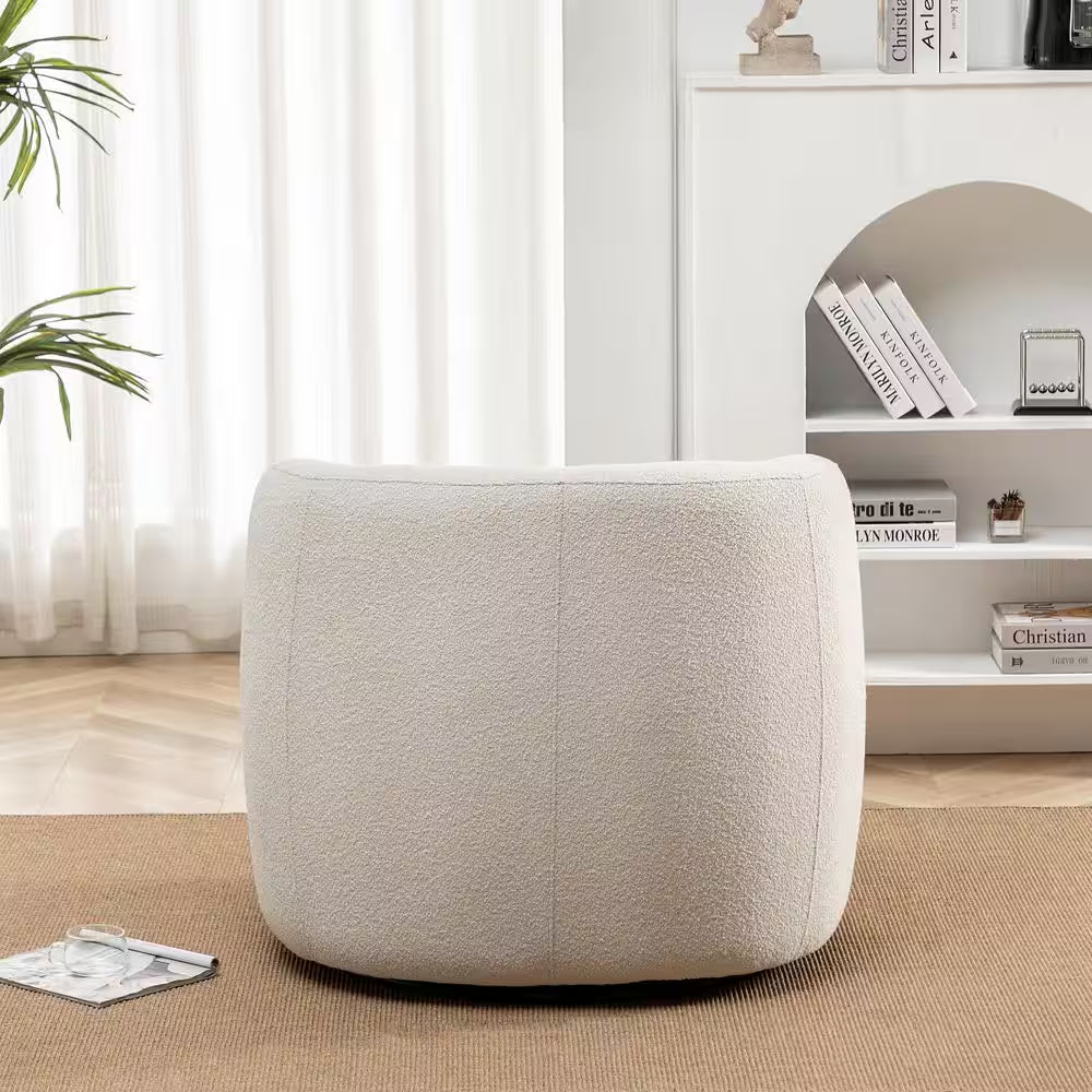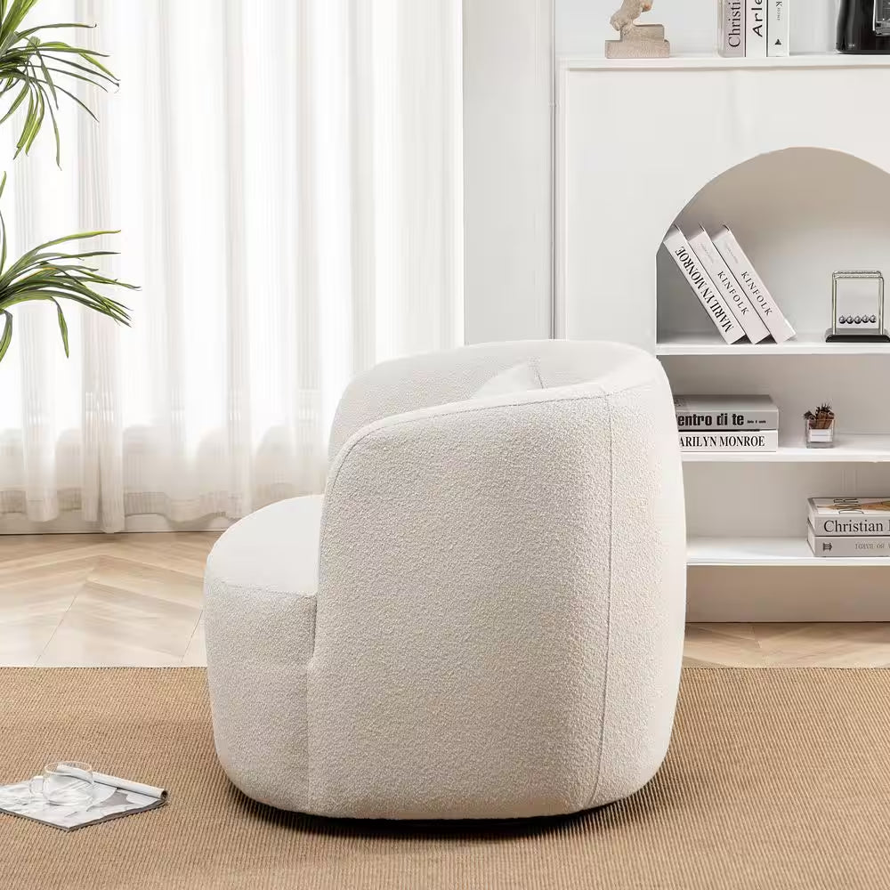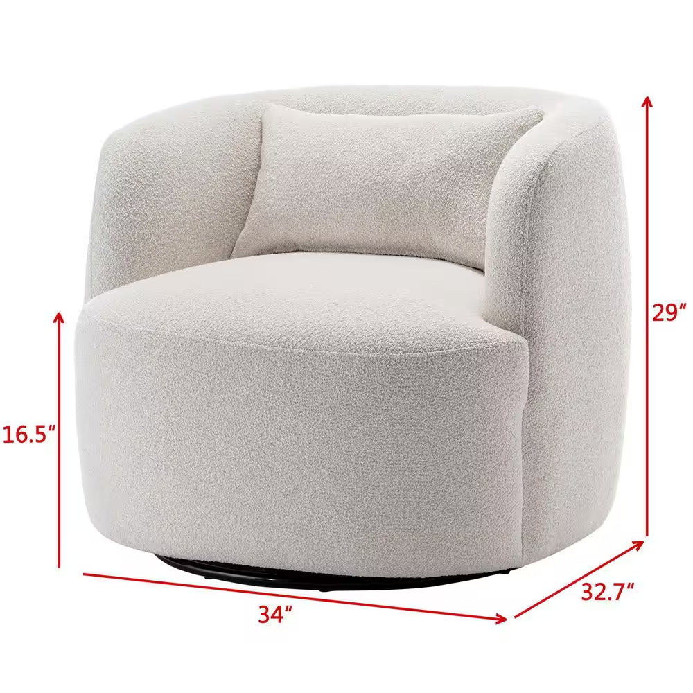 Enjoy this swivel armchair in any room of your home. The boucle-like polyester upholstery brings the comfort of sitting on a cloud. Pine and engineered wood frame with 360° swivel metal base. The boucle chair is compact and space-saving without compromising on comfort. Swivel accent boucle armchair provides a chic place to sip a cup of coffee, dive into a fabulous book, or just whittle away the time comfortably. Generously scaled with a mod silhouette that feels slightly vintage and totally high-end.