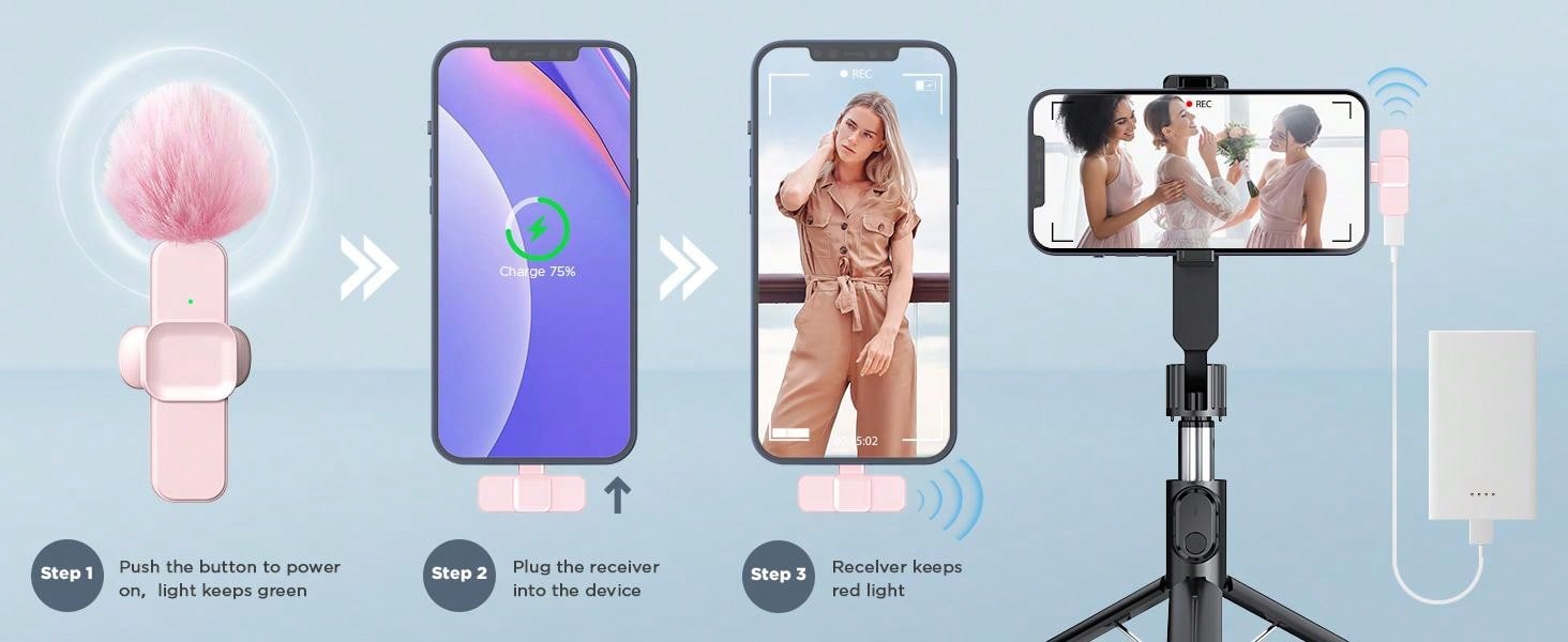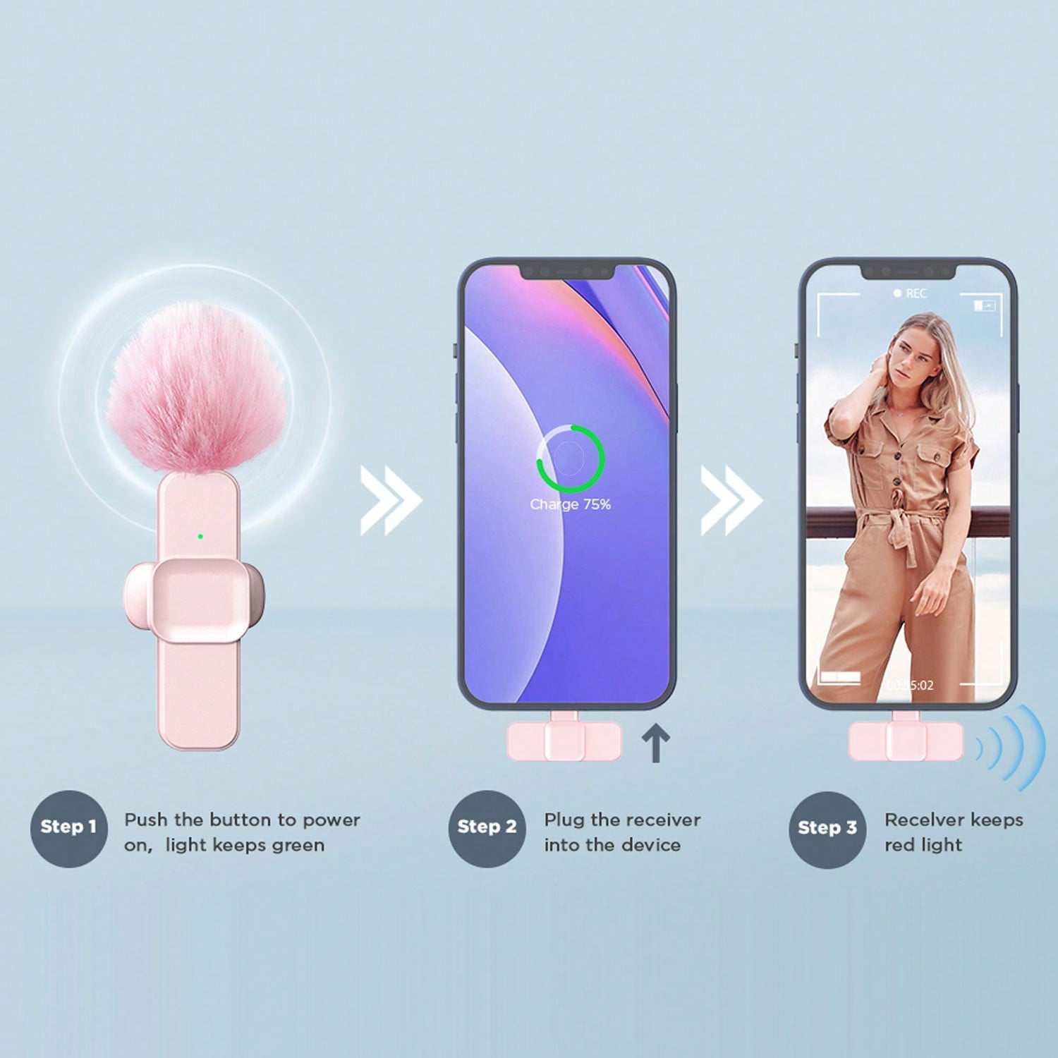 Record with crystal-clear audio using this Professional Wireless Lavalier Microphone. A plug-and-play clip-on lapel mic designed for smartphones, perfect for video recording, vlogging, interviews, online teaching, and presentations. Compact, portable, and easy to use.